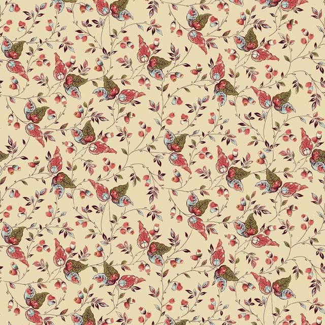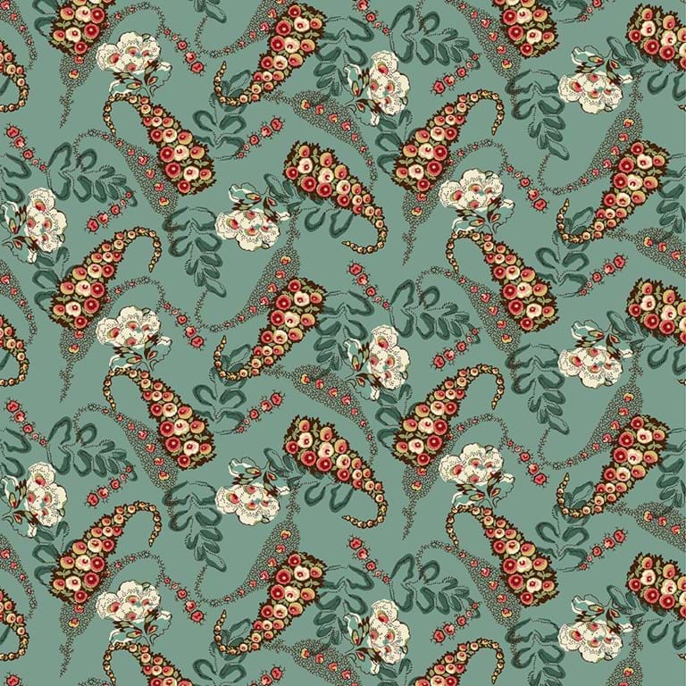 Bucklebury Chintz brings together many historic and timeless motifs in beautiful raspberry pinks, olive greens and ocean blues. Michelle loves to collect antique quilts and in particular ones from the early 1800s. A quilt she collected while in France inspired Bucklebury Chintz. Her modern take brings in more colours while the originals she was inspired by were in tones of mauve and cream. These chintz prints have been around since the 16th century and originated from India. Traditionally, they were created by block printing, featured flowers and other small patterns on a solid colour background. Bucklebury Chintz features paisleys, calico prints and beautiful vines. A print inspired by the moiré technique is also featured within this collection. Bring a bit of history into your next project by using Bucklebury Chintz to create a masterpiece! I have designed a range of quilts using Bucklebury.