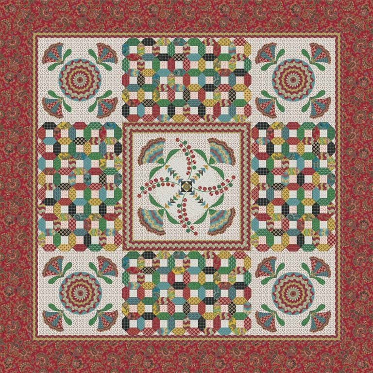 Les Fleur de Nantes is a reproduction range inspired by a stunning 1800's turkey red print that I purchased last year for the specific intention of reproducing it for use by lovers of antique fabrics from bygone years. The collection features 21 prints with 7 different designs in 3 colour ways each, reminiscent of colours from the Pennsylvania Dutch. The prints are all exact replicas of the antique fabric or inspired by the original print and enhanced for today's quilter.