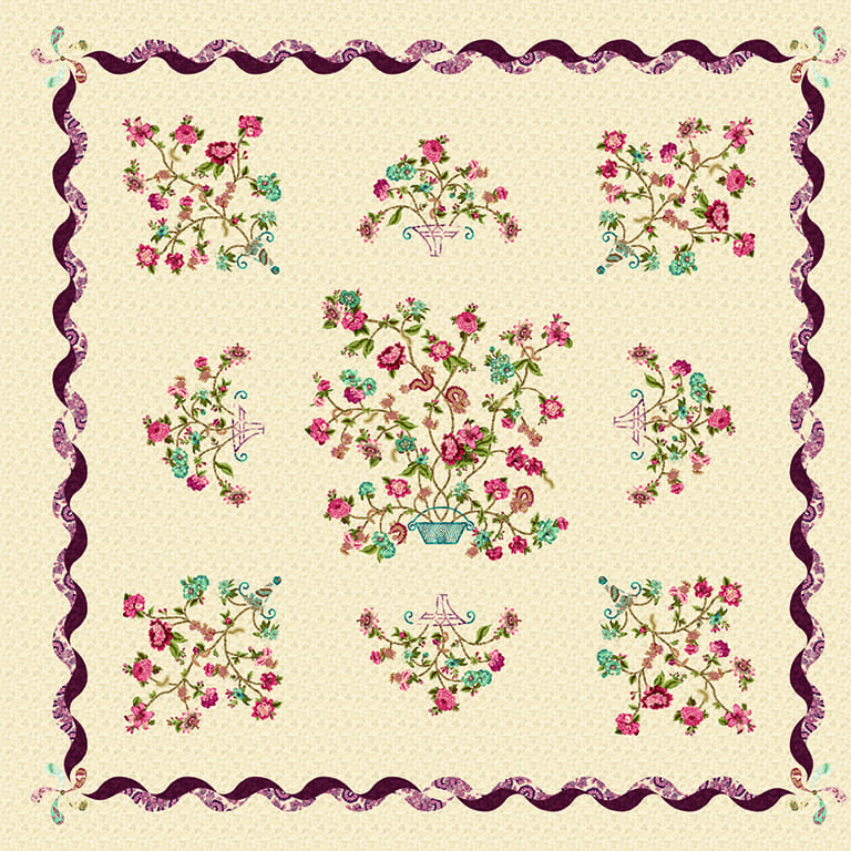 Michelle loves to collect antique quilts and in particular ones from the early 1800s. She loves the range of prints found in floral chintz fabric and border prints from this era which she loves to feature in quilts using Broderie Perse. This technique involves cutting out parts of, or the whole of, a printed design and rearranging the cut motifs to create a unique new design, which is then appliqued onto a background fabric.