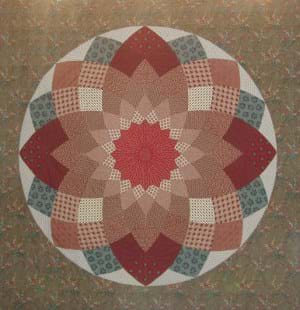 This pattern consists of three versions a 60" square Giant Dahlia quilt. It's gentle curves are quick to piece by either hand or machine. The variations in effect achieved by colour placement, in this quilt, are only limited by your imagination. Finished Size 65” x 65”. Acrylic templates are available for this pattern in 3 sizes, click here to view the templates collections.