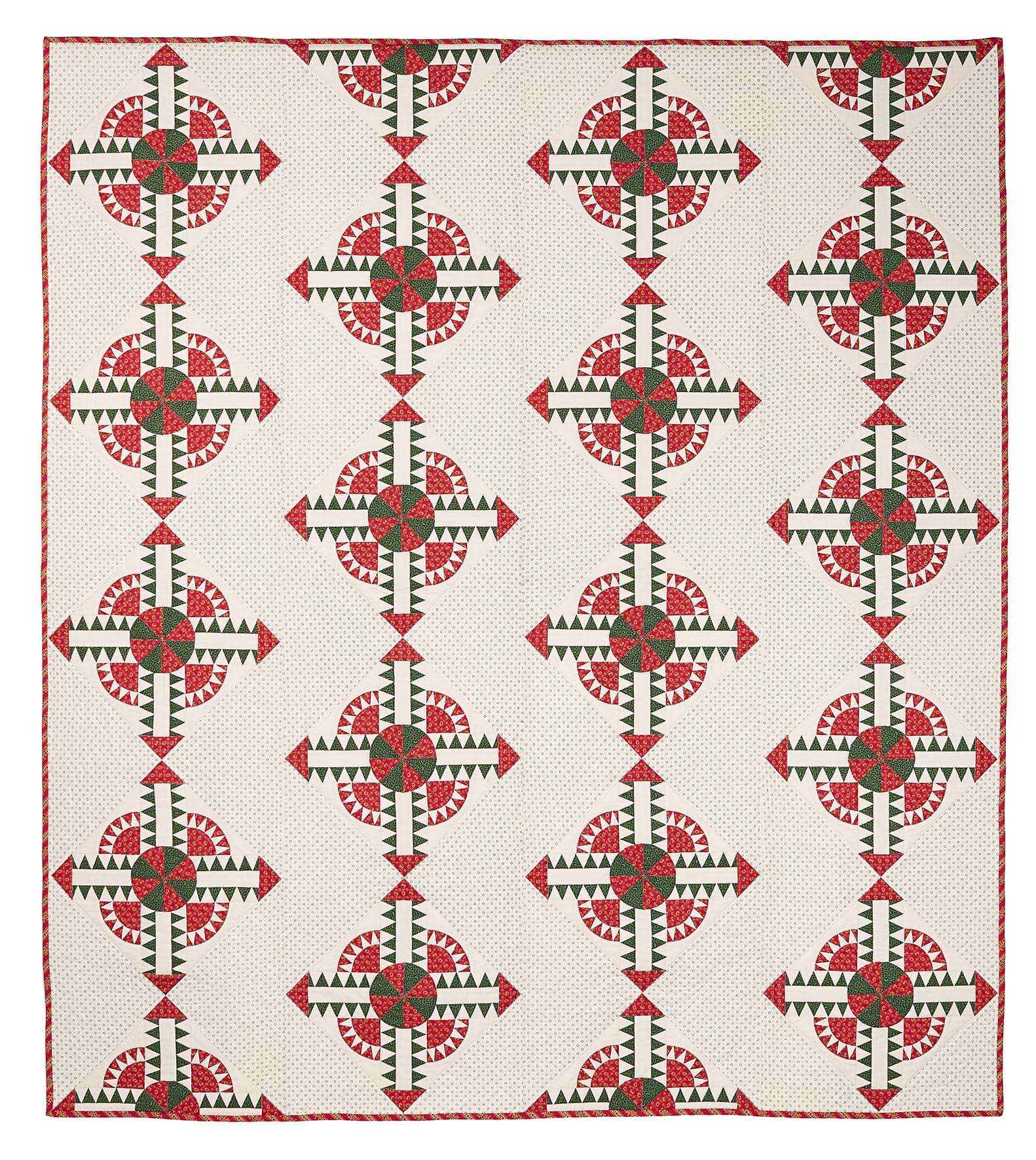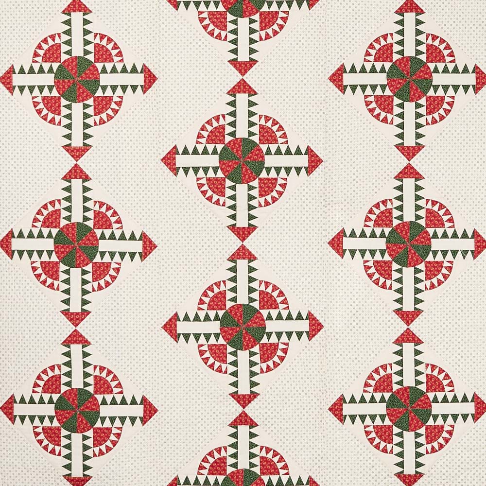 This quilt was inspired by a photo of an antique American quilt sent to me by a friend in Wisconsin. The original quilt dates back to the 1800's and is also in the traditional colours of red, green & cream.